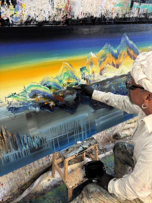 Mit ihrem kuratorischen Fokus auf die Neubetrachtung von Heimat und Nation eröffnet die VOLTA Basel 2026 einen thematischen Rahmen, der auch in Dietmar Brixys Werk auf besondere Weise Resonanz findet. Gerade die großformatige Arbeit Wanderlust (2025, Öl auf Nessel, 100 x 450 cm), die im Rahmen der Messe unter anderem präsentiert wird, verweist auf Landschaft nicht als festen Ort, sondern als inneren wie äußeren Erfahrungsraum. Zwischen Erinnerung, Aufbruch, Weite und Verortung entsteht ein Bildgefüge, das Fragen nach Herkunft, Zugehörigkeit und Wahrnehmung in eine vielschichtige, zeitgenössische Bildsprache überführt.